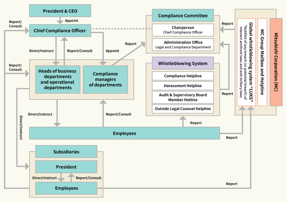 - Mitsubishi Corporation’s global whistleblowing system (“LUKS”) dedicated to breaches related to antitrust laws and anti-bribery laws